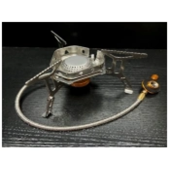 Metal Single Burner Camping Stove - Portable Detachable Stove System with Foldable Legs, Burner & Gas Hose Connector, Uses External Gas Canister - Compact Lightweight for Hiking, Backpacking, Camping Cooking - Fast Boiling - Includes 1 Stove (Gas Excluded)