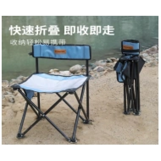 Black Frame Folding Chair - Lake Blue Backrest & Grey Seat|3-Second Fold for German Fishing/Camping - 7lb Lightweight with Non-Slip Gravel Feet