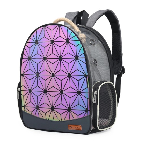 Laser Gradient Pet Backpack with Transparent Side Window + Breathable Mesh Design | 32 x 20 x 42 cm Stand-Up Backpack for Cats and Dogs | 1 Piece, No Accessories Included baigou