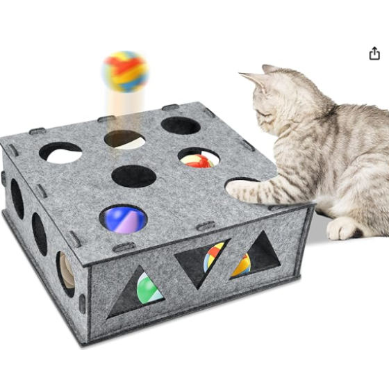 Interactive Mental Stimulation Felt Cat Toy with Colorful Balls & Holes - Compact 28x26x12cm Space-Saving - Satisfies Hunting Instinct, Trains Reflexes & Coordination, Releases Cat Energy