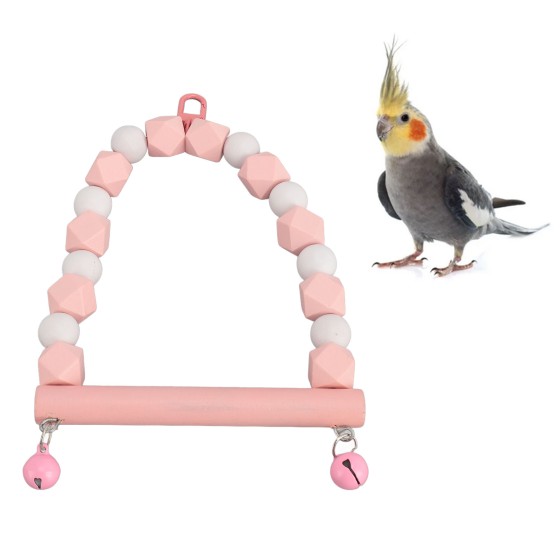 鹦鹉秋千吊环三件套(粉/黄/蓝)| 磨爪站棒+栖息杆二合一 | 鸟笼玩具套装 YM2116230017012