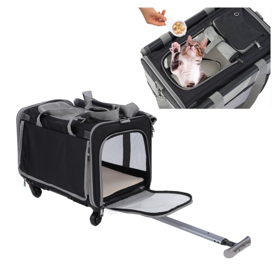 航空级宠物拉杆箱 - 网纱通风窗+喂食口 47x30x39cm 黑灰便携猫箱 可伸缩拉杆/万向轮 YM2116240002911