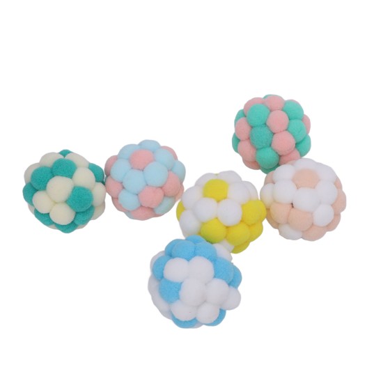猫咪玩具6个装 耐咬铃铛逗猫球 彩色毛绒自嗨球 内置响铃吸引猫咪注意力 帮助消耗精力保持活跃 室内宠物互动玩耍玩具