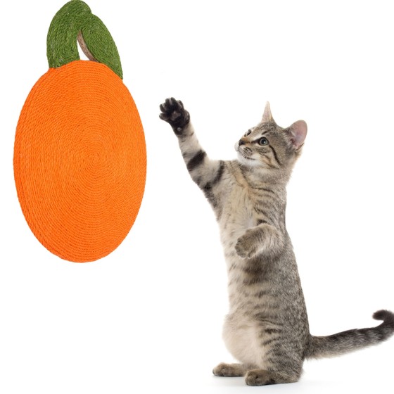 甜橙造型吸盘猫抓板 免打孔壁挂式黄麻磨爪器 强力吸盘固定节省空间 有效保护家具沙发 耐磨耐抓猫咪玩具 时尚家居装饰