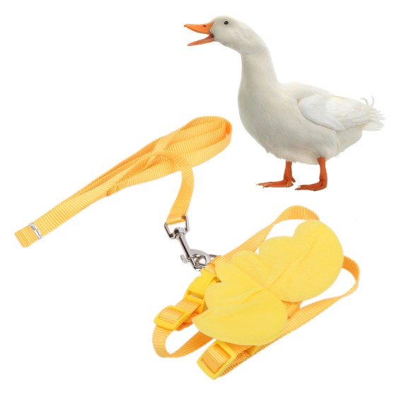 H 黄色 M号 | 宠物鸭子牵引绳 家禽遛绳 可调节安全胸背带 防走失 适用于鸭、鸡、鹅、宠物鸟 | 含牵引绳