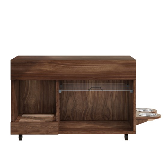 【胡桃木色/古木灰粽色可选】多功能猫砂盆柜子 带猫碗挂钩板防洒落食盆 侧翻盖式隐形猫厕所收纳柜 100*45.5*67cm