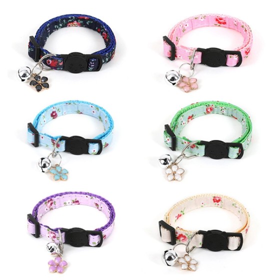 宠物项圈单件套 六色可选(深蓝/粉/浅蓝/绿/紫/米色) 带安全卡扣铃铛花朵挂饰 优质软尼龙材质可水洗可调节(18-28cm) 碎花图案清新可爱装饰项圈 1.0*30cm ONB2505135 runshi