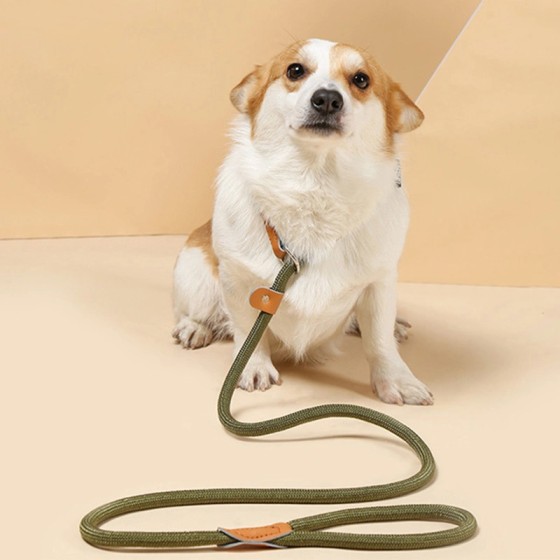 宠物牵引绳130cm 单件套七色可选(棕/蓝/粉/紫/红/黑/荧光绿) 一体编织尼龙绳防爆冲|加厚金属连接扣+防滑橡胶握把|耐磨抗拉扯 遛狗防勒手 通用猫狗牵引绳 ONB2505141 runshi