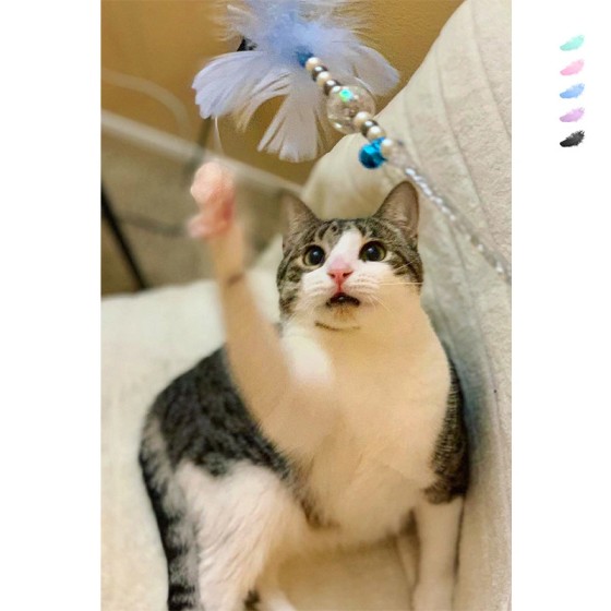 三色可选逗猫棒单支装 40cm加长闪粉杆体+14cm仿真羽毛 铃铛亮片珠串互动玩具 - 粉/薄荷绿/蓝 激发猫咪捕猎天性 室内运动神器 ONB2505152 runshi