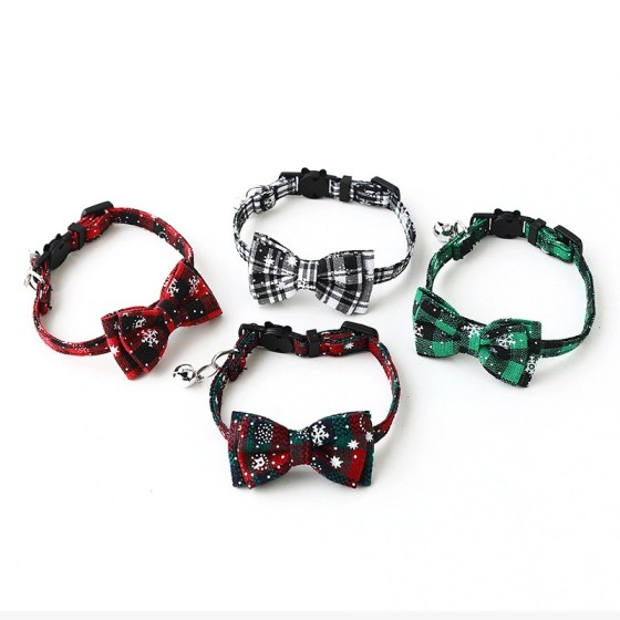 圣诞宠物项圈四款可选:红黑格/红绿格/绿黑格/黑白格 配蝴蝶结铃铛+主题挂饰(圣诞老人/树/袜/手套)|22.5-27.5cm可调 小型犬节日装扮 ONB2505131 runshi
