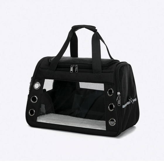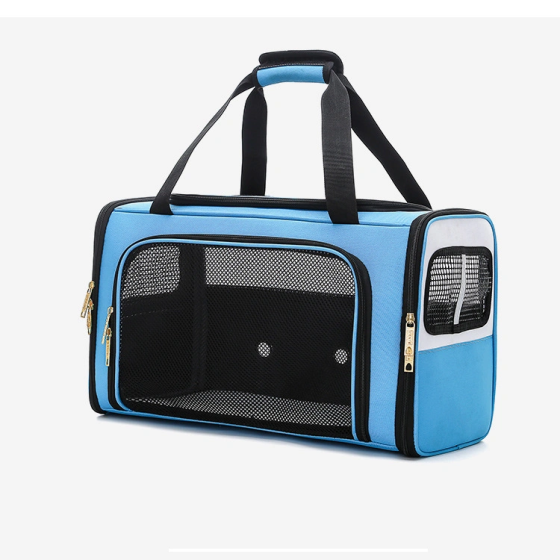蓝色宠物背包透气猫包便携外出包 44x28x29cm 全景透明窗+侧边透气孔 多拉链开口设计 手提带 小型犬猫咪短途出行箱 单件装 baigou
