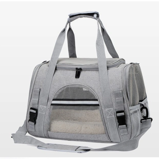 三色可选宠物背包透气便携猫包小型犬外出包 43x25x28cm 多网面设计+提手肩带双模式 浅灰/黑/绿 遛宠就医出行箱 单件装 baigou