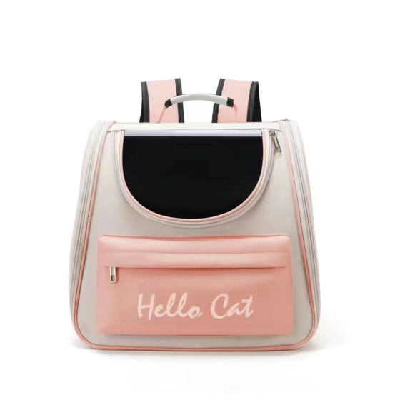 宠物背包双肩猫包 Hello Cat刺绣 浅粉米白 透气多开口 底袋 37x23x34cm 1个装 baigou