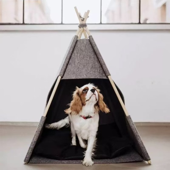 毛毡宠物帐篷 S/M/L三尺寸(60*60*45/80*80*64/100*100*78cm) - 抗静电狗窝 吉娃娃至拉布拉多通用,锥形支架稳固私密空间+家居装饰两用 chuangze