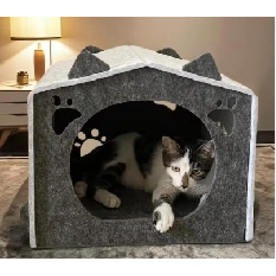 毛毡猫窝40*30*60cm - 柔软护爪材质+屋顶瞭望台设计,专属躲藏休息空间,爪印装饰家居两用讨主子欢心 chuangze