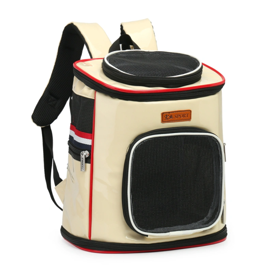 米白宠物背包 网纱透气窗+穹顶口|撞色线装饰(黑/白/红)|31*26*38cm|双肩轻便款|猫咪小型犬适用 baigou