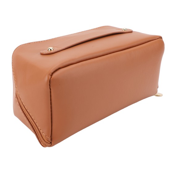 棕色大容量旅行化妆包带提手(24x18cm) - 防水收纳化妆品&个护用品 - 可擦拭内衬+多隔层 YM3117250006111