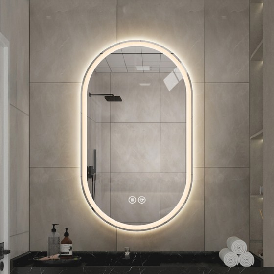 60*90cm智能浴室镜 椭圆无框防雾镜 触摸屏LED化妆镜 三色无极调光 银框