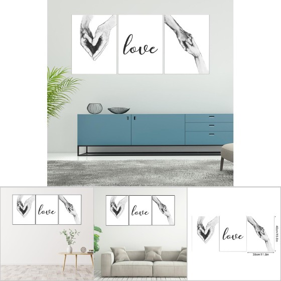 【三件套北欧】画芯30*40cm 黑白抽象爱心纹理 防水防褪色画布 DIY相框内芯 客厅卧室 YM 3115200025711