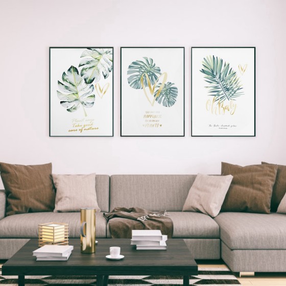 三幅装龟背竹北欧装饰画 | 涤纶防水帆布 客厅餐厅酒店适用 (40x50cm/总重171g) 微喷无框画芯套装 YM 3115200024111