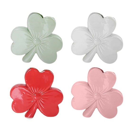 陶瓷花瓶可选款:幸运草 或 蝴蝶结设计 | 手绘柔粉/薄荷绿/白色 (约395g) 桌面摆件 圣诞礼物家居装饰 YM 250313HL02-1