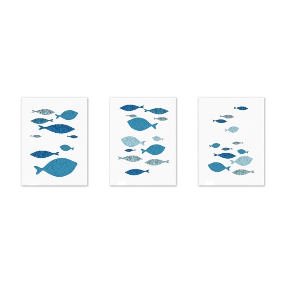 三幅装北欧插画鱼群无框画 | 涤纶帆布商业装饰画 办公酒店墙面挂画 (30x40cm/总重96g) 极简商用艺术 YM JY10153