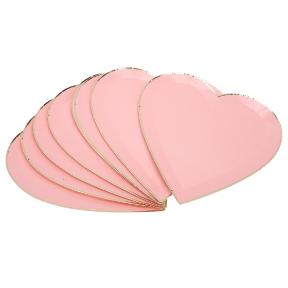H 爱心造型一次性餐盘8只装 - 加厚纸质婚庆生日情人节派对装饰果盘 (粉色, 约17cm) YM1214210009212