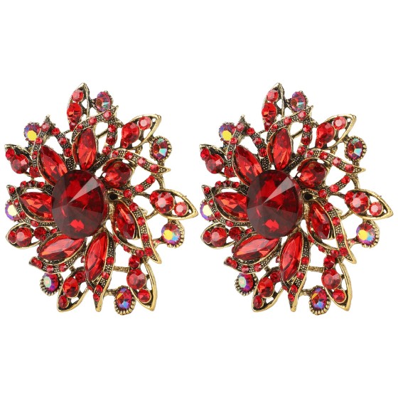 Vintage Rhinestone Flower Brooch, Red Crystal Alloy Lapel Pin 2-Pack for Women Men, Elegant Floral Corsage for Jacket Coat Bag Wedding Party Gift (2Pcs, 65x65mm)