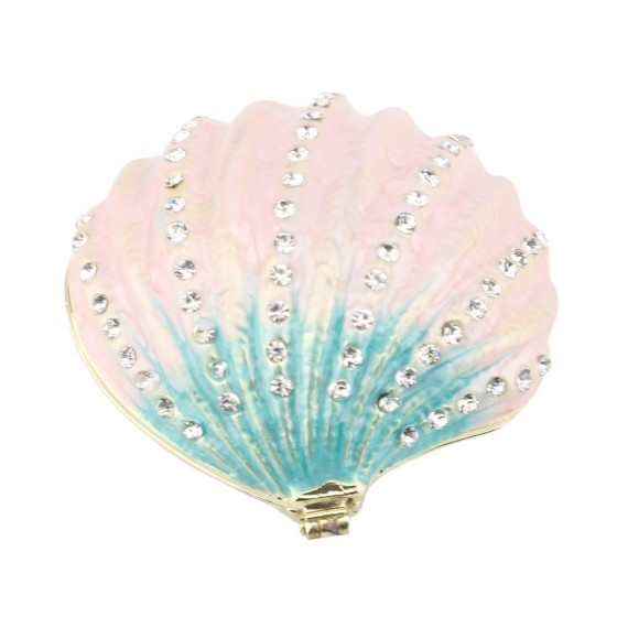 Enamel Seashell Trinket Box, Pink & White Hand-Painted Alloy Jewelry Box with Rhinestones, Hinged Decorative Gift for Valentine's Day, Birthday, Home Decor (5.8x5.6cm)