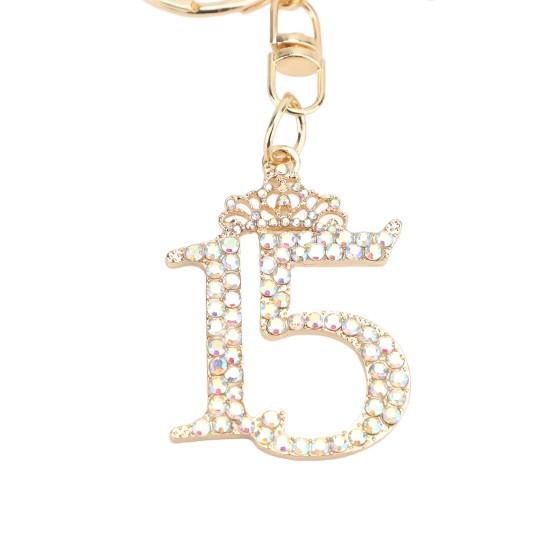 Number 15 Keychain Green, Rhinestone Crystal Initial Pendant for Women, Personalized 15th Birthday Gift for Girls, Best Friend Anniversary Present
