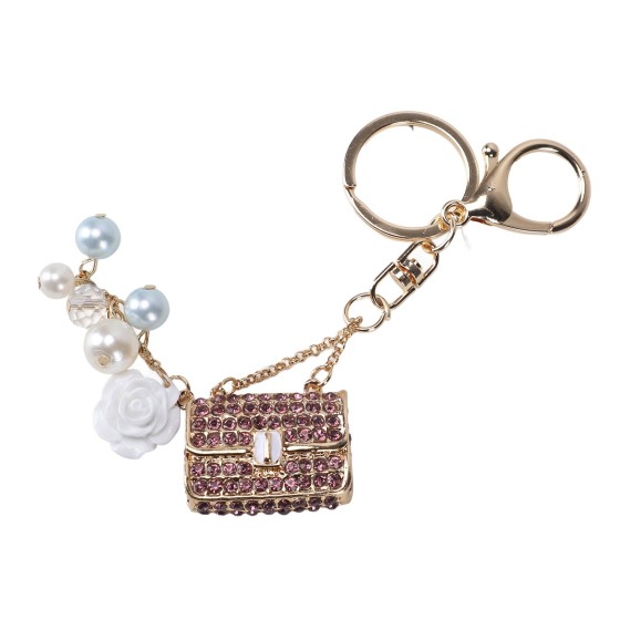 Sparkling Purple Handbag Keychain, Rhinestone and Rose Pendant for Women, Cute Mini Purse Key Ring for Bag Charm, Unique Gift for Girlfriend Best Friend