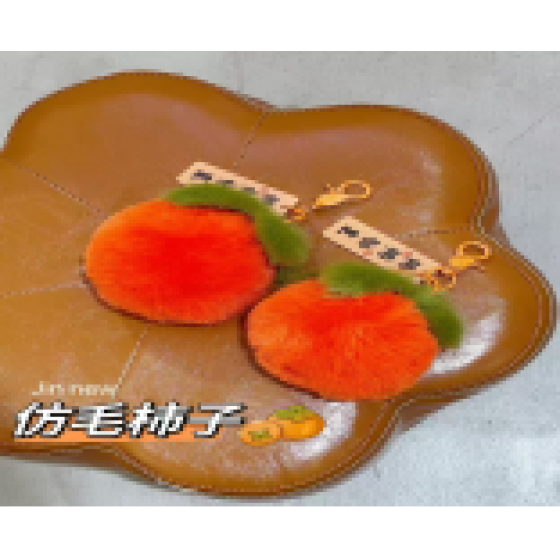 🍊 Faux Fur Persimmon Charm - 5.5" Plush Keychain for Purse/Bag | Soft Japanese Lucky Decor & Cozy Gift Idea