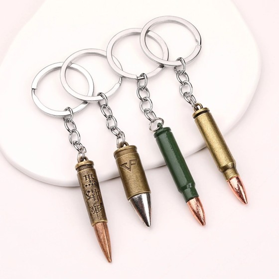 单个装 | 复古金属子弹造型钥匙扣 - 绿/古铜刻字/古铜VF/金4色 | 坚固钥匙圈链条 | 个性装饰实用钥匙挂环 | 约32mm+19mm+主体 ONB2505004 runshi