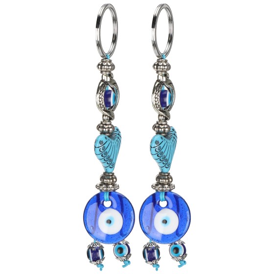 H土耳其蓝眼睛钥匙扣挂件 纳扎尔护身符合金琉璃珠子 双个装 个性包包饰品 礼品好运辟邪