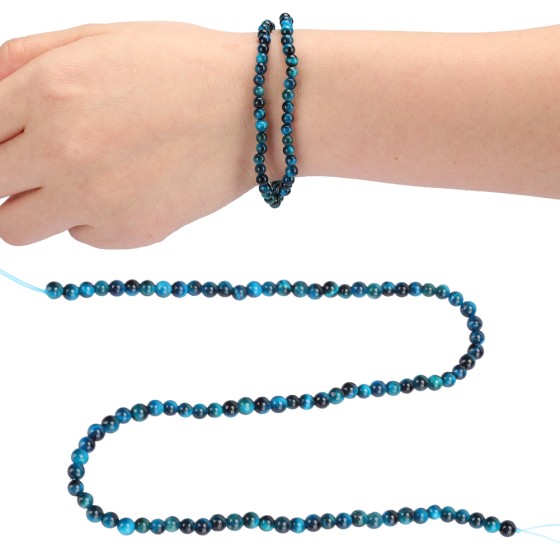 H 天然蓝虎眼石散珠4mm 92颗一串 AAA级蓝虎睛石DIY手链项链配件材料YM1511200028911