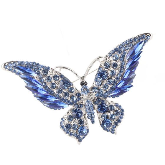 H复古风华 镶钻水晶蝴蝶胸针 蓝色合金大别针 男女通用西装外套装饰 婚礼派对礼品 单只装 (约8.9cm)