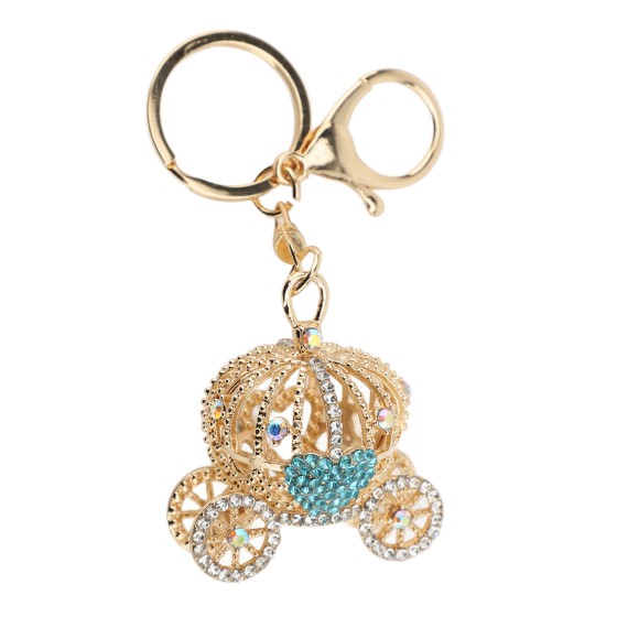 蓝色南瓜马车钥匙扣 桃心爱心水晶吊饰 送女友浪漫生日礼物 童话公主风包包挂件 合金镂空设计