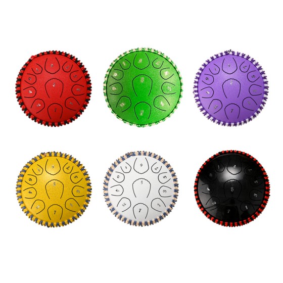 单只装空灵鼓礼盒款:6寸11音莲心款(粉/灰绿) 7寸11音小苹果款(6色) 8寸11音斑点款(4色) 配鼓槌乐谱 | 碳钢 meikeluyin