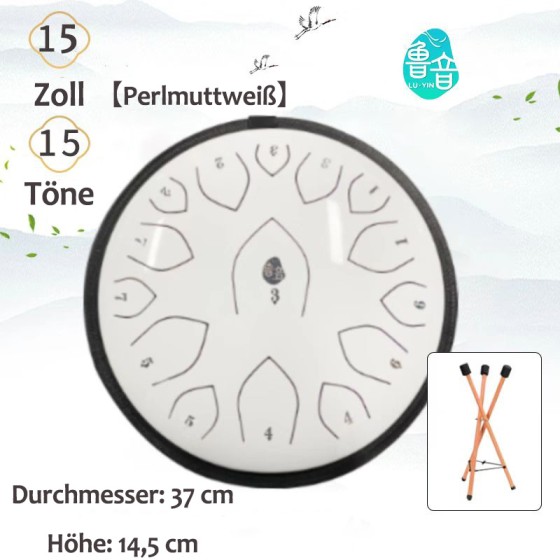 单只装15寸空灵鼓金盾款15音:马卡龙绿/雅灰/珍珠白 赠鼓架+防摔包 | 防滑底座 悠长延音 meikeluyin