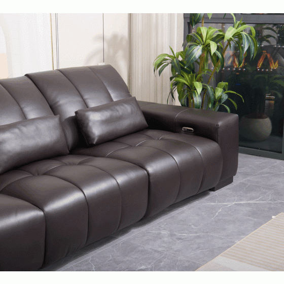 电动功能沙发深棕三人位,右侧躺椅+三区独立靠背调节,高端皮革耐用设计 naite