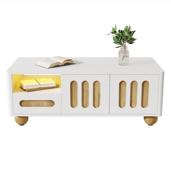 现代带LED灯茶几电视柜 16色变幻 储物客厅茶几 双层4门2抽屉 白色木纹 安全圆角 105*50cm