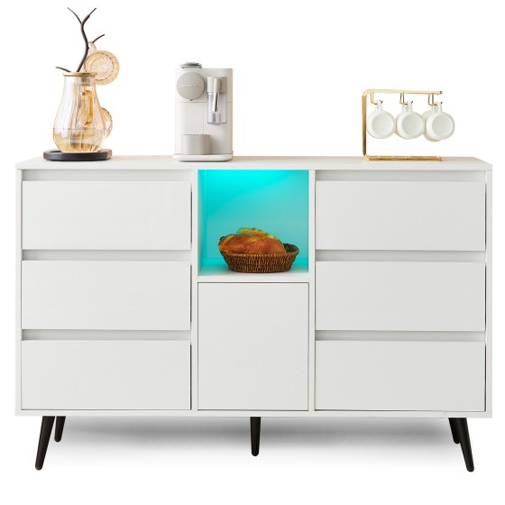 现代轻奢 亮光LED变色遥控餐边柜 6静音抽屉按压开门客厅储物柜子 带金属脚设计 适用于餐厅客厅 [120*40*80cm]