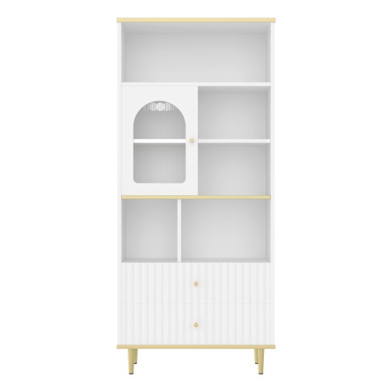 智能书架带LED灯条 180cm高玻璃门书柜 遥控变色RGB光效+静音抽屉 多功能展示架置物架 适用于客厅卧室电竞房 白色