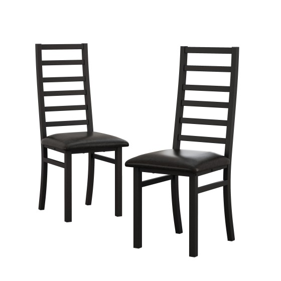 高靠背软包餐椅两把装 无扶手现代简约PU皮革椅子 家用厨房书房座椅(黑色)