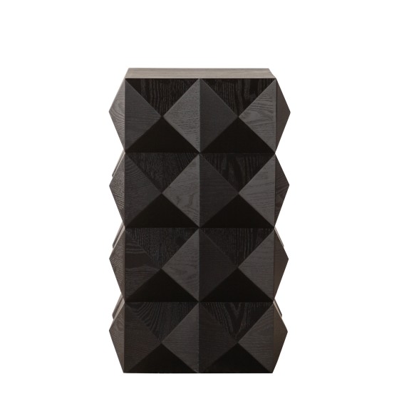 60厘米复古实木边桌 免安装即用 立体浮雕设计床头柜 客厅卧室小型茶几 承重220磅(黑色)