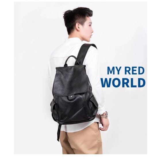 Full - Grain Leather Men's Backpack - 28.5×41×12cm, Stylish & Durable, Fits 14'' Laptop, Ideal for Business, Commute & Travel”