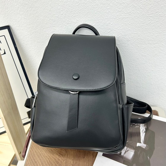 PU Leather Backpack Single Pack - Vintage Minimalist Daypack 26x13x33cm (Black/Beige/Brown) - Flap Front with Snap Button & Cross Strap - Multi-Compartment (Zippered Main+Front+Padded Back) - Commuter & Campus Essentials baisitu