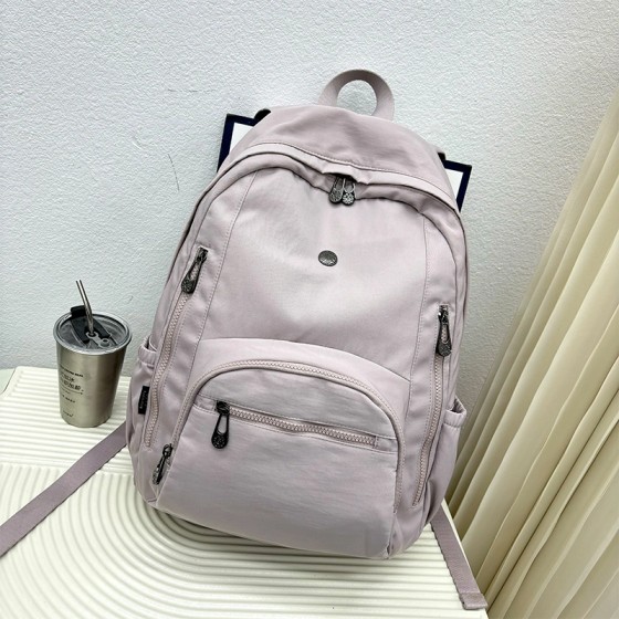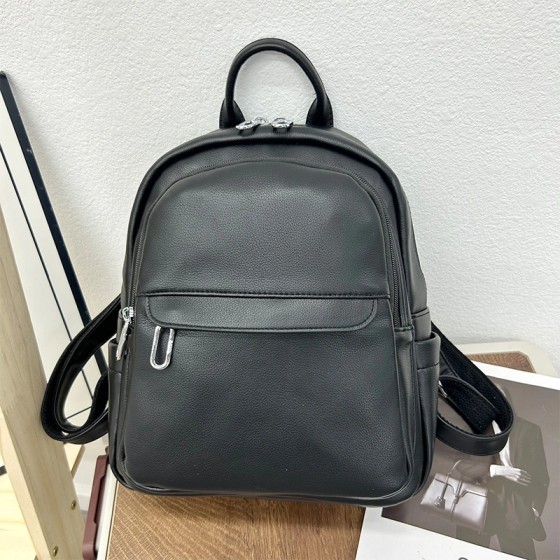 Unisex Leather-Texture Backpack (Light Beige/Khaki/Black) – Top Handle & Multi-Pocket Design: Metal-Accented Front Zip, Main Compartment, Side Pockets | Water-Resistant for Daily Commute 33×26×13cm / 13×10.2×5.1in baisitu