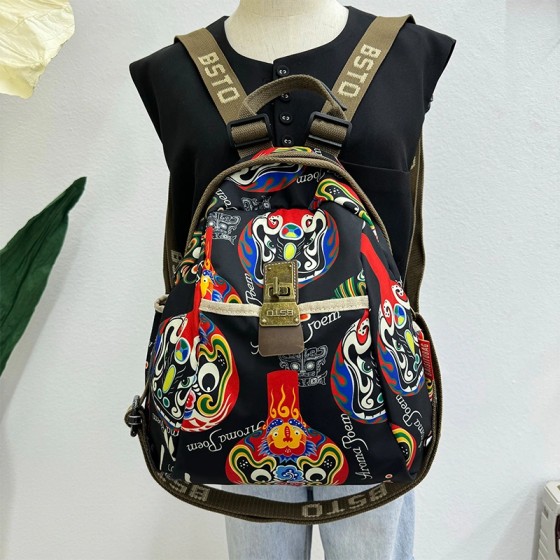 Canvas Backpack Single Pack - 4 Print Designs (Lotus Botanical Art/Floral Fresh/Opera Mask Street Style/Abstract Bird Art) - Zipper Closure, Top Handle, BSTO Shoulder Straps, Metal Buckle - Lightweight Daily Commute School Bag - 31x19x35cm baisitu