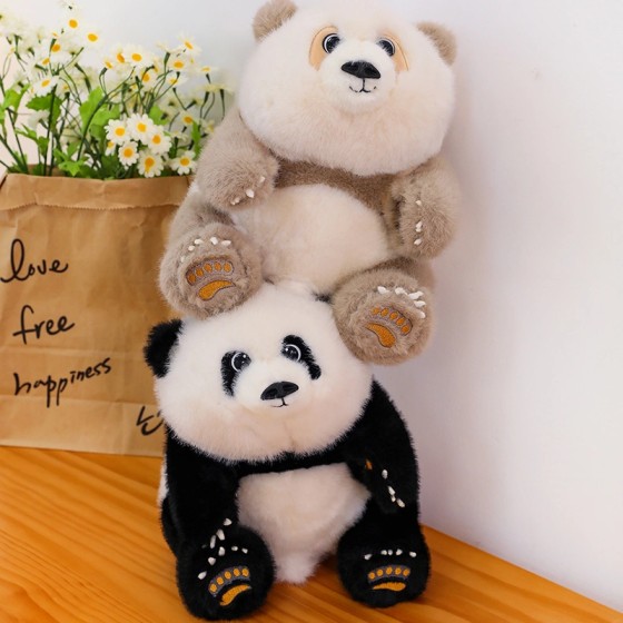 🐼 Bamboo-Hugging Panda Plush - 10in Coffee Table Zen Master|12in Nursery Bamboo Grove Pal - Sino-German Dual Design - Jet Black & Cream with Emerald Bamboo